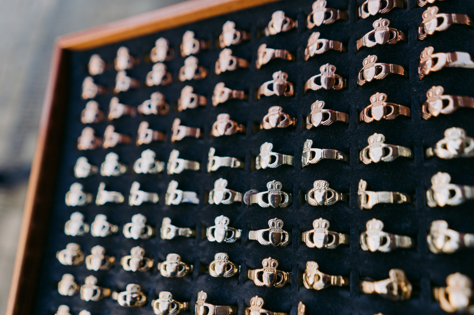 The museum at Thomas Dillon’s Claddagh Gold, has been described as “the smallest museum in Europe with the biggest gift shop”. It proudly houses some of the very first claddagh rings made in 1700 -1800, by Goldsmiths Nicholas Burge, Richard Joyce and George Robinson. It also displays the “worlds smallest claddagh ring” which is on the top of a tailor’s pin. Other exhibits include examples of rings at various stages of production, from wax blanks to the finished product and a selection of tools used during the process.